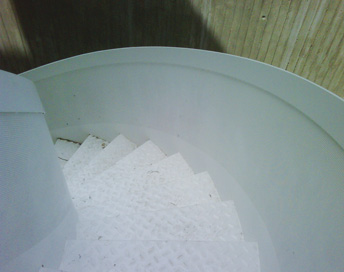 • Escalones en chapas antideslizantes, de metal desplegado pesado o maderas duras.